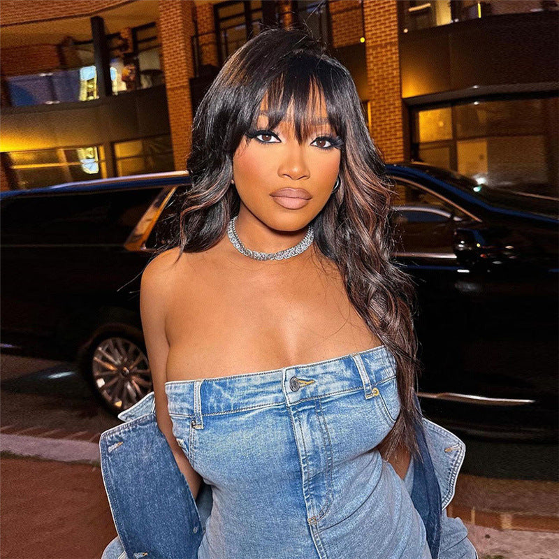European And American Style Denim Tube Top Cinched Waist Slim And Sexy Hip Bag Dress