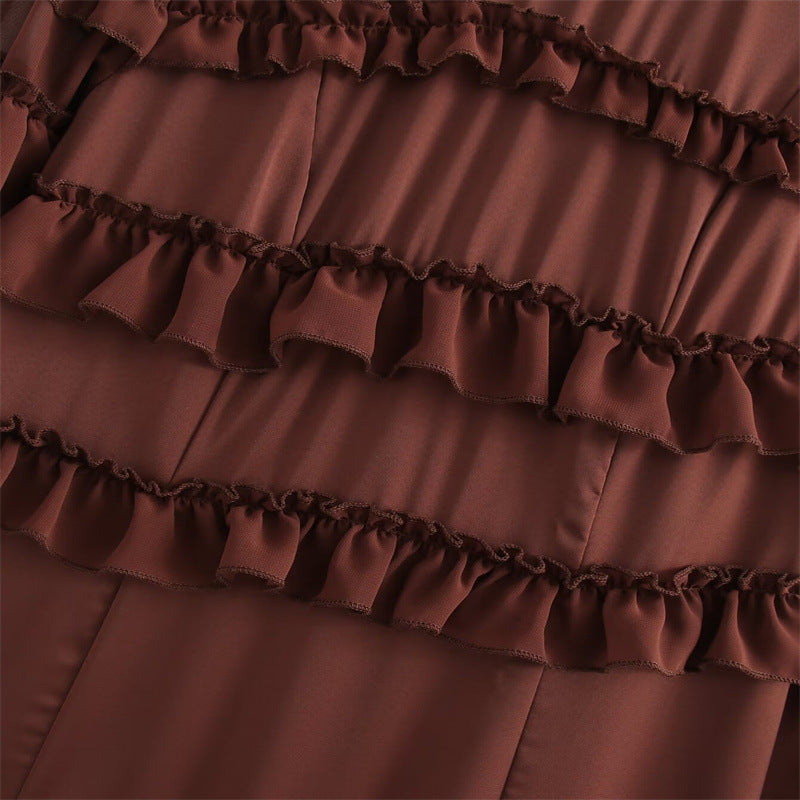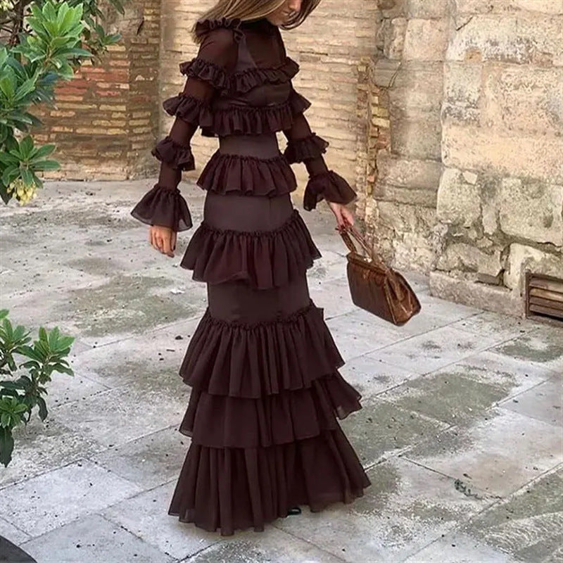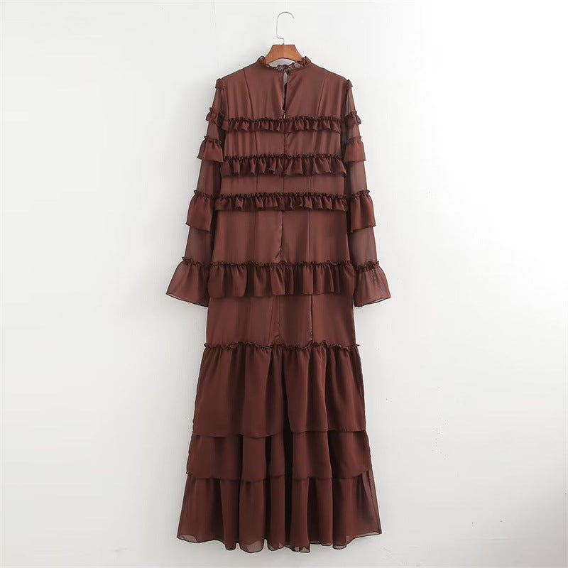 French Style Design Chiffon Multi-layer Ruffled Long Sleeve Dress
