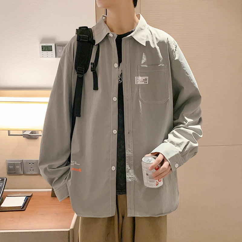Hong Kong Style Casual Printed Shirt Men's Fashion Shirt Long Sleeve Thin