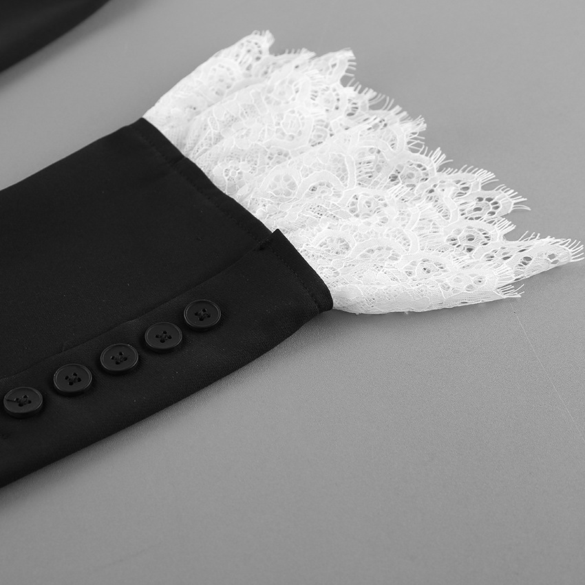 V-neck Lace Wind Black Small Suit Jacket