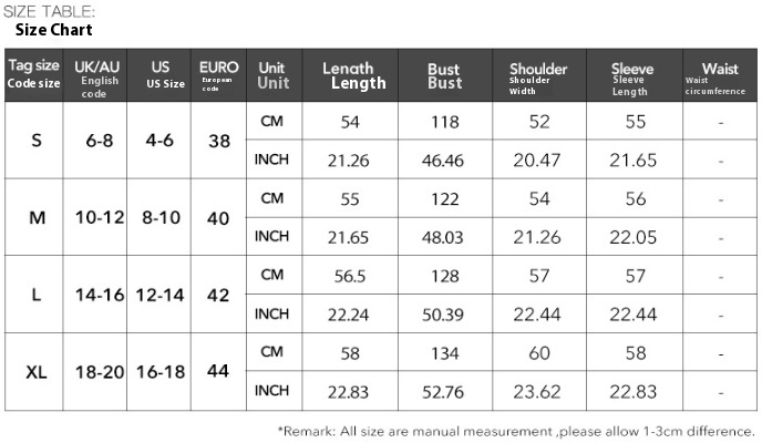 Note: 1. Asian sizes are 1 to 2 sizes smaller than European and American people. Choose the larger size if your size between two sizes. Please allow 2-3cm differences due to manual measurement. 2. Please check the size chart carefully before you buy the item, if you don't know how to choose size, please contact our customer service. 3.As you know, the different computers display colors differently, the color of the actual item may vary slightly from the following images.