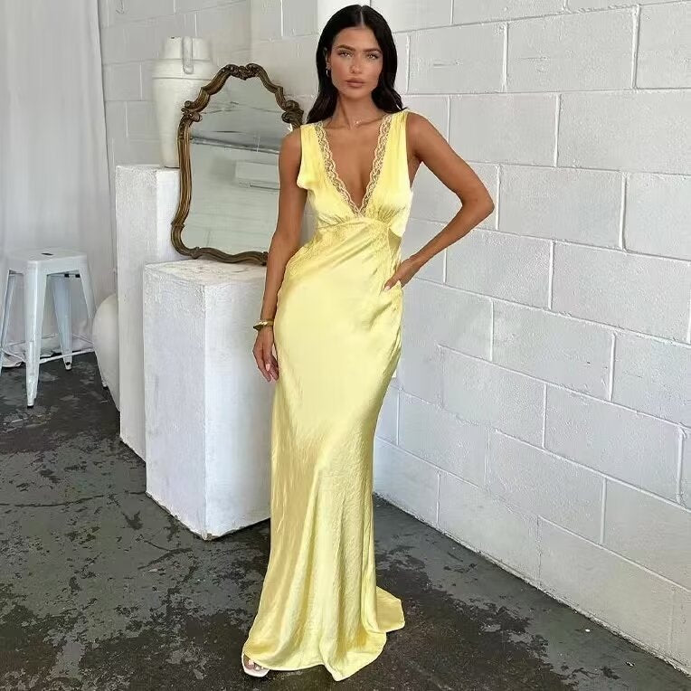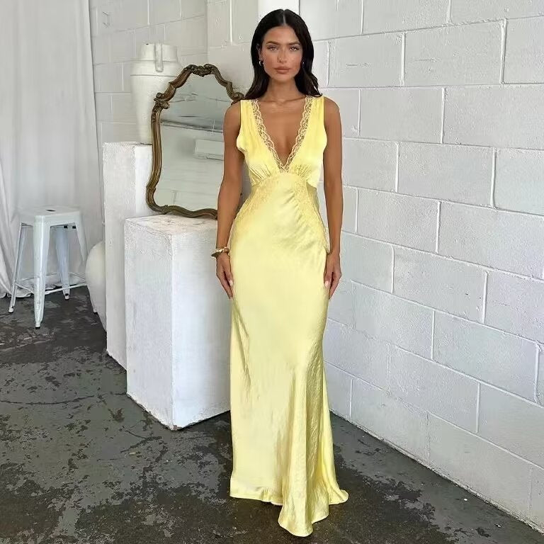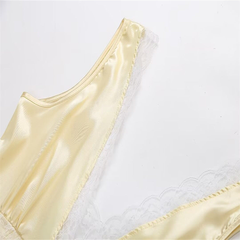 Women's Graceful And Fashionable Lace V-neck Lace Stitching Sleeveless Dress